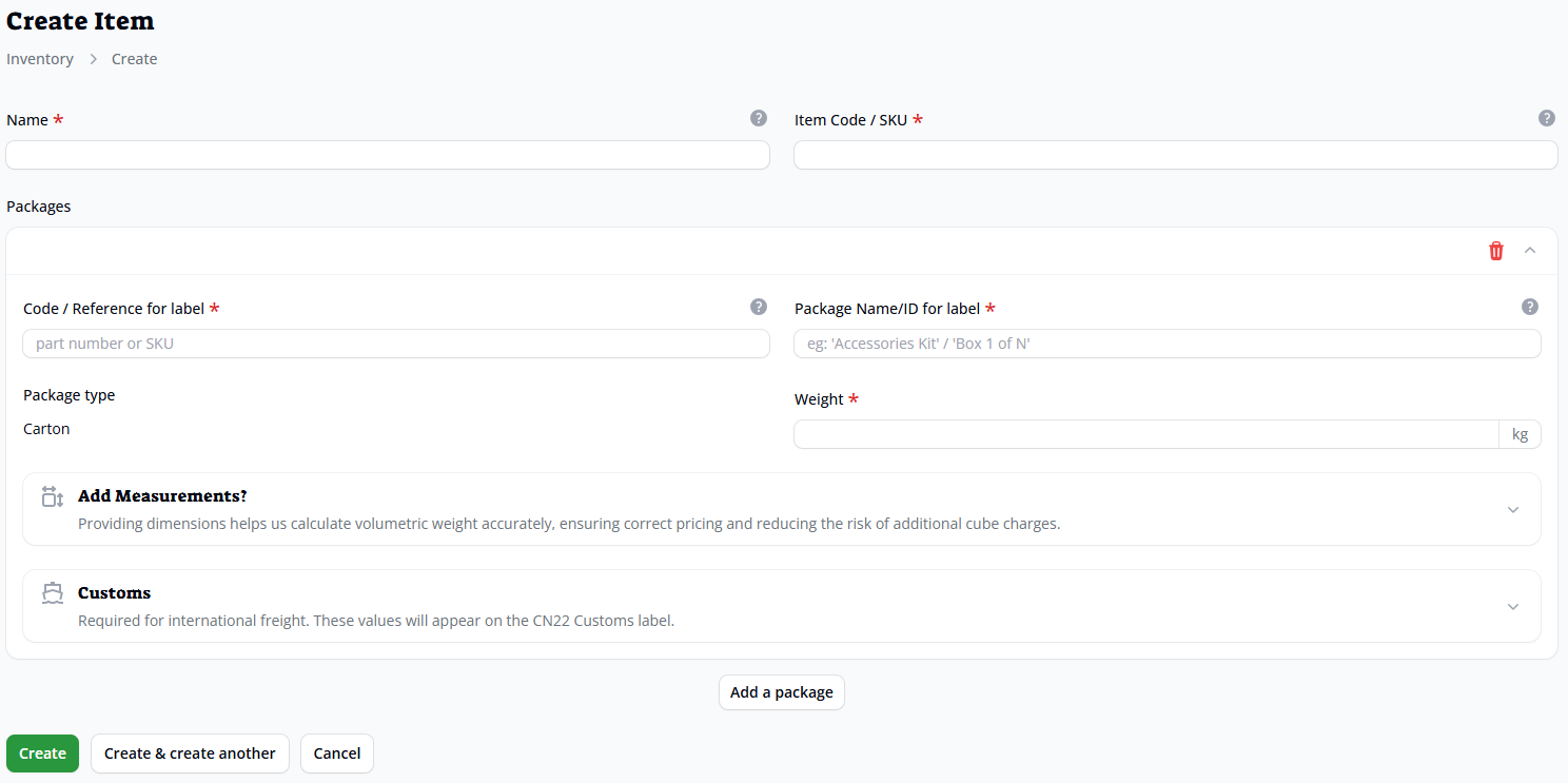 • Item Code / SKU – a product code that matches the information provided in the consignment CSV upload for the package/group of packages