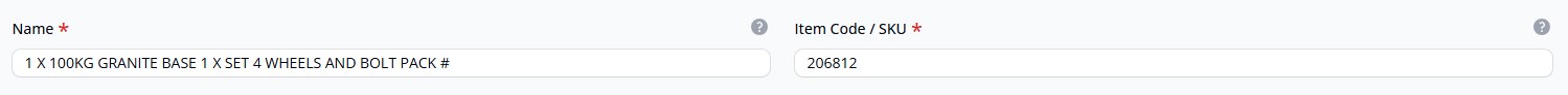 Product (product set) name and code/SKU (as per consignment CSV upload)